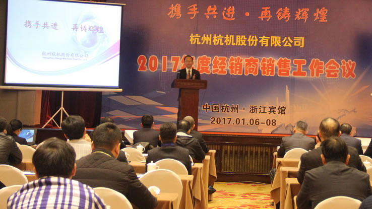 杭機(jī)股份2017年度經(jīng)銷商工作會議于1月6日-8日在浙江賓館舉行,來自全國各地的50多家經(jīng)銷公司代表參加了會議。