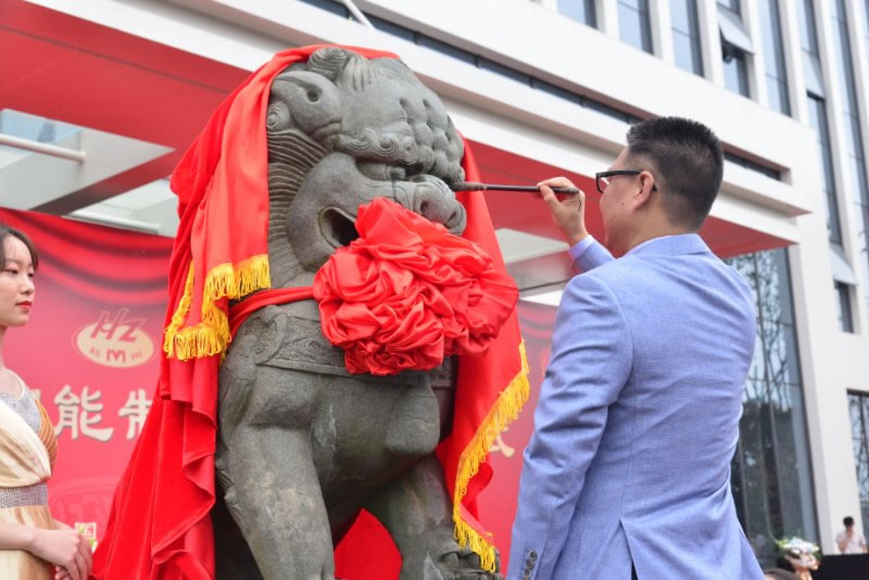 浦江縣人民政府副縣長(zhǎng)樓新有和杭機(jī)股份董事長(zhǎng)進(jìn)行瑞獸開(kāi)眼儀式